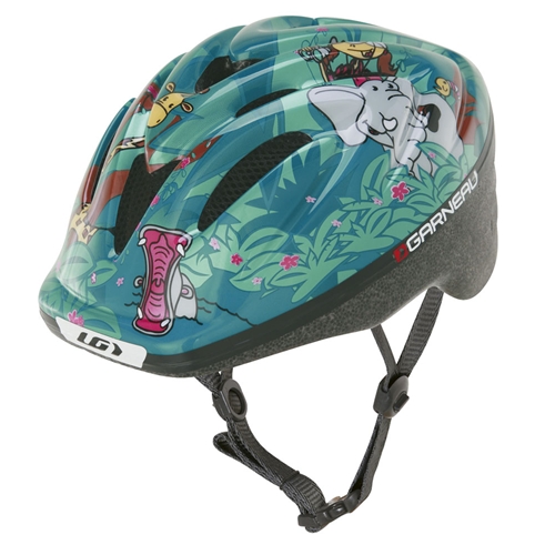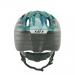 かわいらしいデザインのキッズ用ヘルメット。安全面から後頭部もすべて覆う形状です。大人用同様にポジショニングベルトも装備されています。